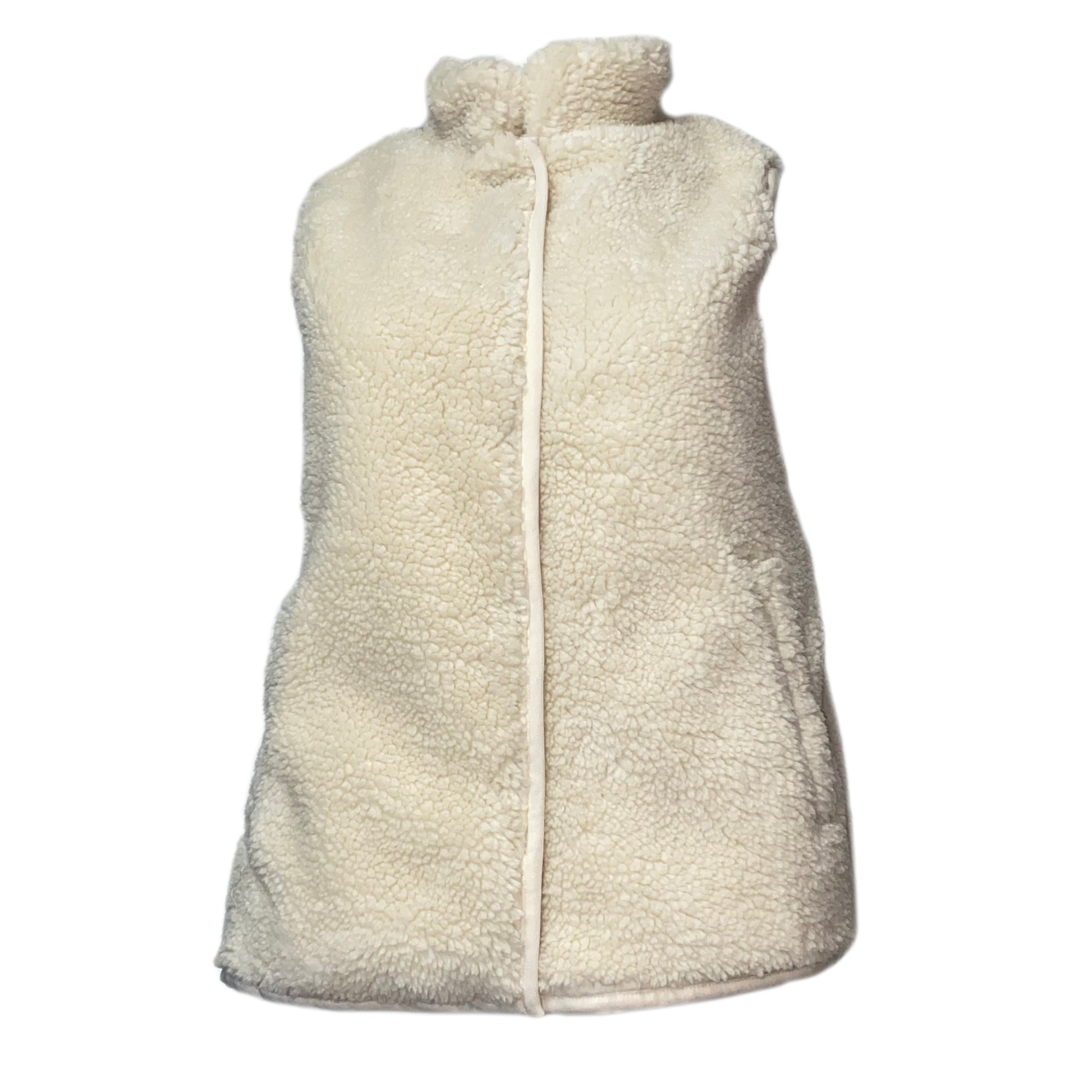 Eine kuschelige Damenweste aus weichem Lammfellimitat in elegantem Creme. Sie verfügt über einen wärmenden Stehkragen, eine verdeckte Knopfleiste und praktische Einschubtaschen. Eine zusätzliche Innentasche bietet Platz für kleine Wertsachen.