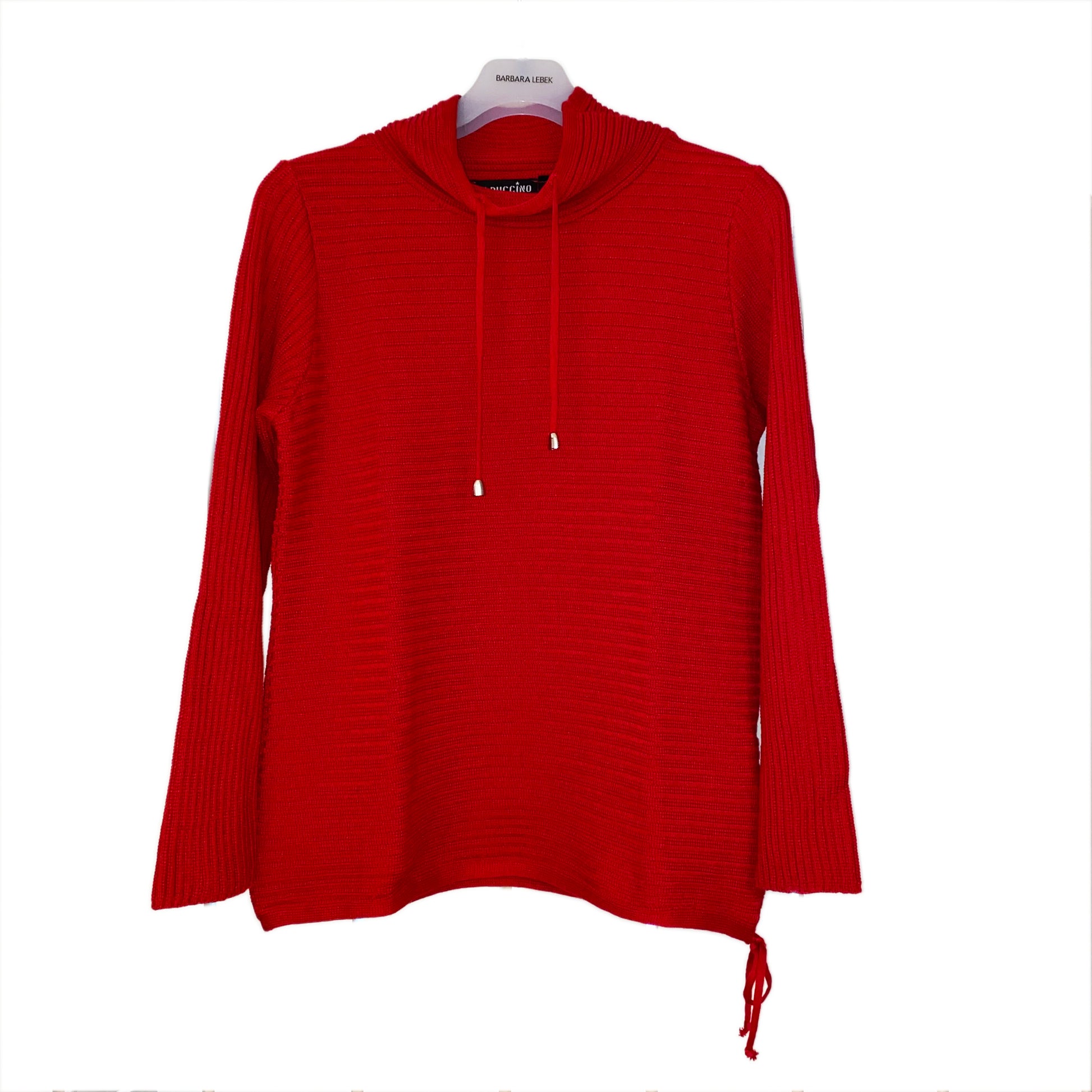 Dieser CAPUCCINO Pullover in leuchtendem Rot ist ein gemütliches Highlight für deine Garderobe. Die angenehme Baumwollmischung sorgt für ein weiches Tragegefühl. Charakteristisch ist die auffällige, breite Querrippe, die dem Pullover eine moderne Struktur verleiht. Der praktische Stehkragen mit Tunnelzug und der Langarm-Schnitt runden den lässigen, aber stilvollen Look perfekt ab.