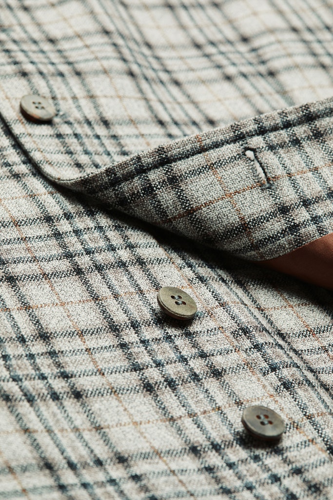 Die Weste Lucien fängt das leichte Gefühl des Glücks ein. Aus feinstem, in sanften Naturtönen und elegantem Schwarz kariertem Stoff, verleiht sie Ihrem Anzug eine unwiderstehliche Tiefe und entspannte Eleganz.