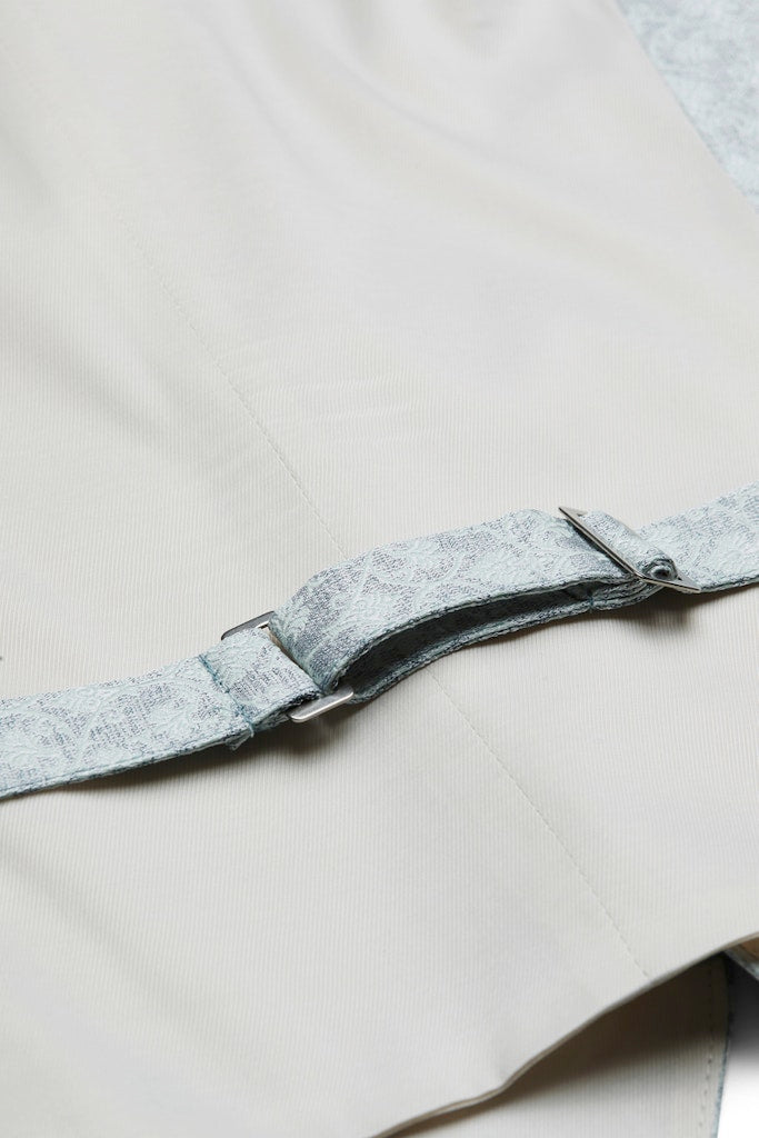 Das zarte, hellgrüne Brokatgewebe mit seinem feinen Ornamentmuster fängt das Licht ein und unterstreicht Ihren festlichen Auftritt. Mit liebevollen Details wie den stoffüberzogenen Knöpfen und den dezenten kleinen Taschen ist sie der Inbegriff von Stil. Der komfortable Futterrücken sorgt dafür, dass Sie sich den ganzen Tag – vom Ja-Wort bis zum letzten Tanz – rundum wohl und perfekt gekleidet fühlen. Für Momente, die bleiben.