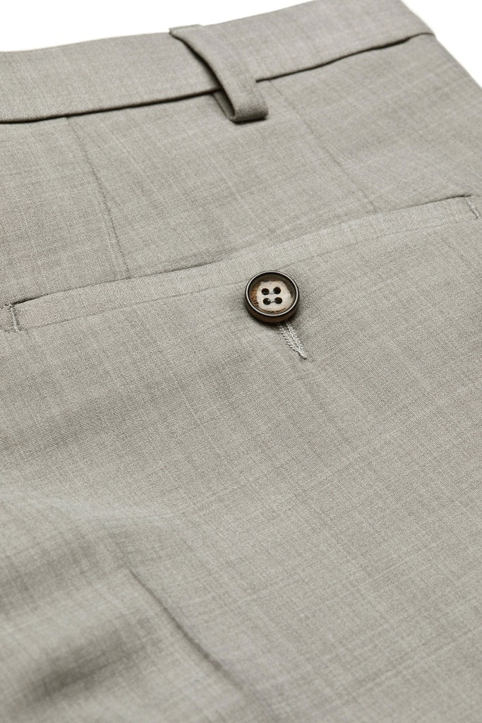 Die Hose Franco besticht durch ihren klassischen Schnitt, der eine elegante Silhouette schafft, ohne einzuengen. Das hochwertige Material ist nicht nur angenehm zu tragen, sondern harmoniert auch perfekt mit der leichten Struktur des Sakkos. Die Farbe Greige wird auch hier wieder aufgegriffen. Der Clou an dieser Hose ist der Flex-Bund, der für einen maximalen Komfort und eine perfekte Passform sorgt.