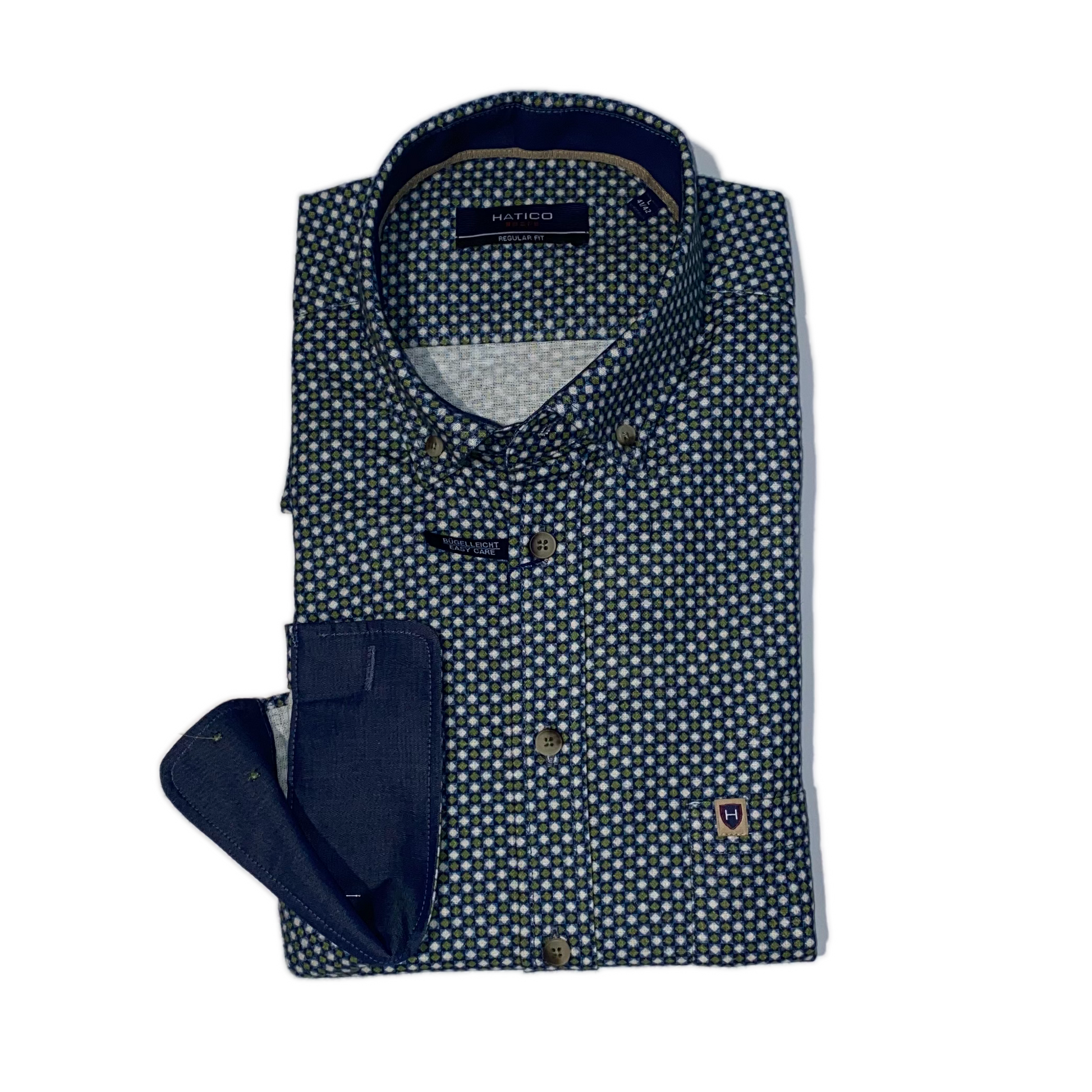 Dieses Herrenhemd von HATICO überzeugt durch sein klassisches Design und hohen Tragekomfort. Der Grundton wird durch einen kleinen grafischen Druck mit stilvollen grünen Akzenten hervorgehoben. Gefertigt aus 100 % Baumwolle und mit der „easy care“-Ausrüstung ist es besonders pflegeleicht und bügelleicht.