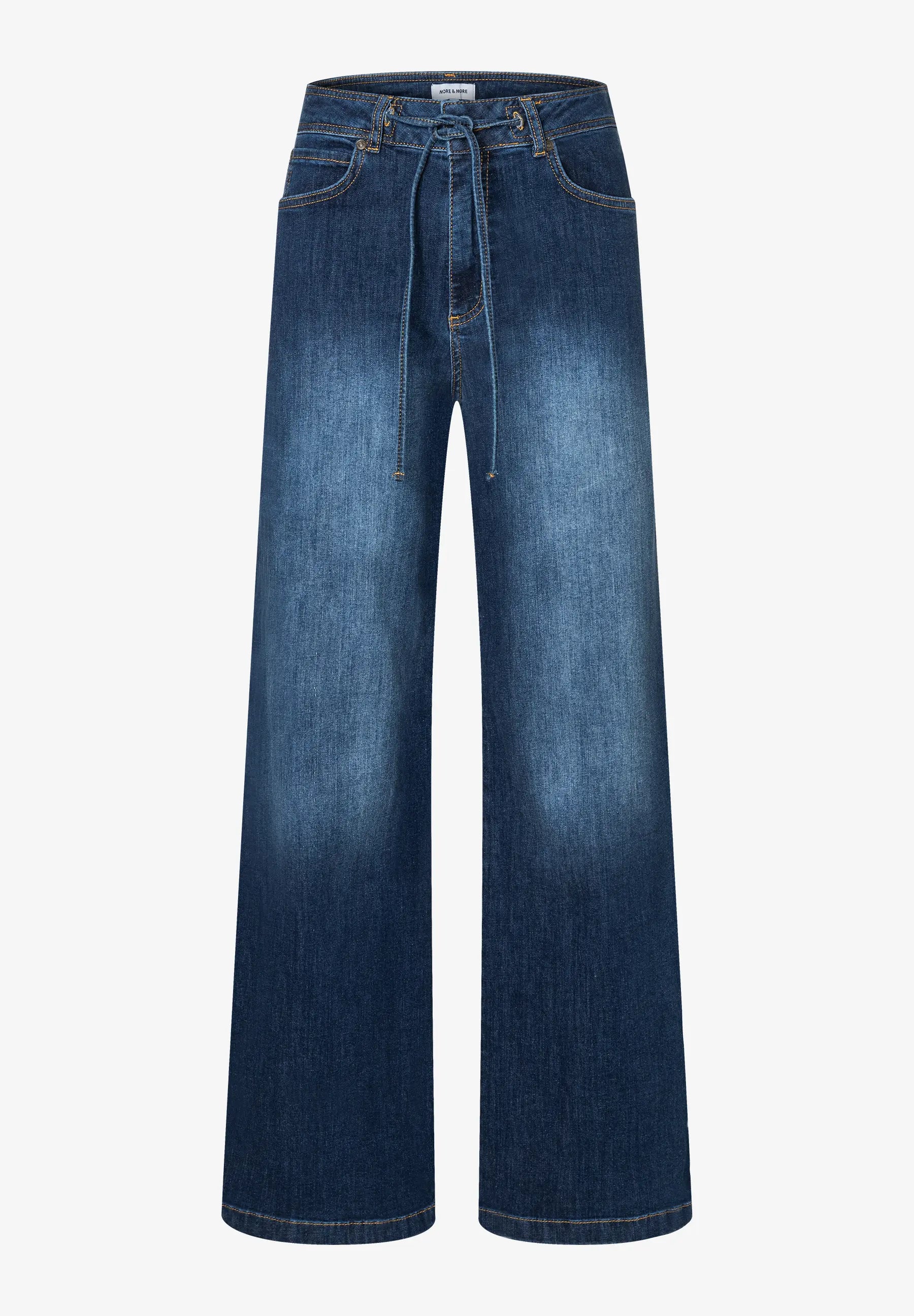 Locker, lässig und unverzichtbar in diesem Herbst. Die weite Jeans von MORE & MORE mit dunkler Waschung und sportivem Tunnelzug am Bündchen bringt coolen Street-Style in Ihren Look. Die Hose lässt sich super stylen mit schmalen T-Shirts, fließenden Blusen und rustikalem Strick und bietet gleichzeitig einen hohen Tragekomfort durch das elastische Material.