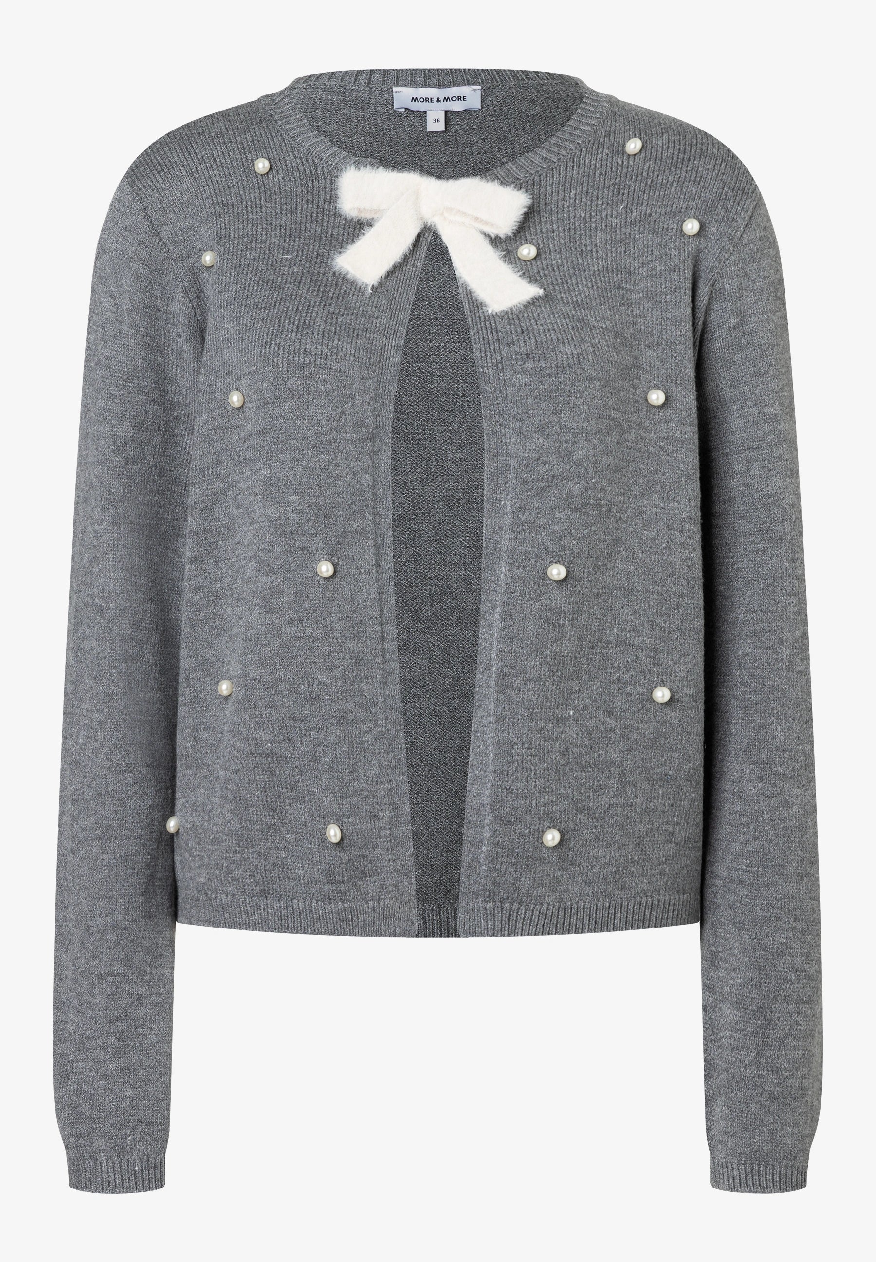 51111200 MORE&MORE - Cardigan with Bow and Pearls 0740 warm grey